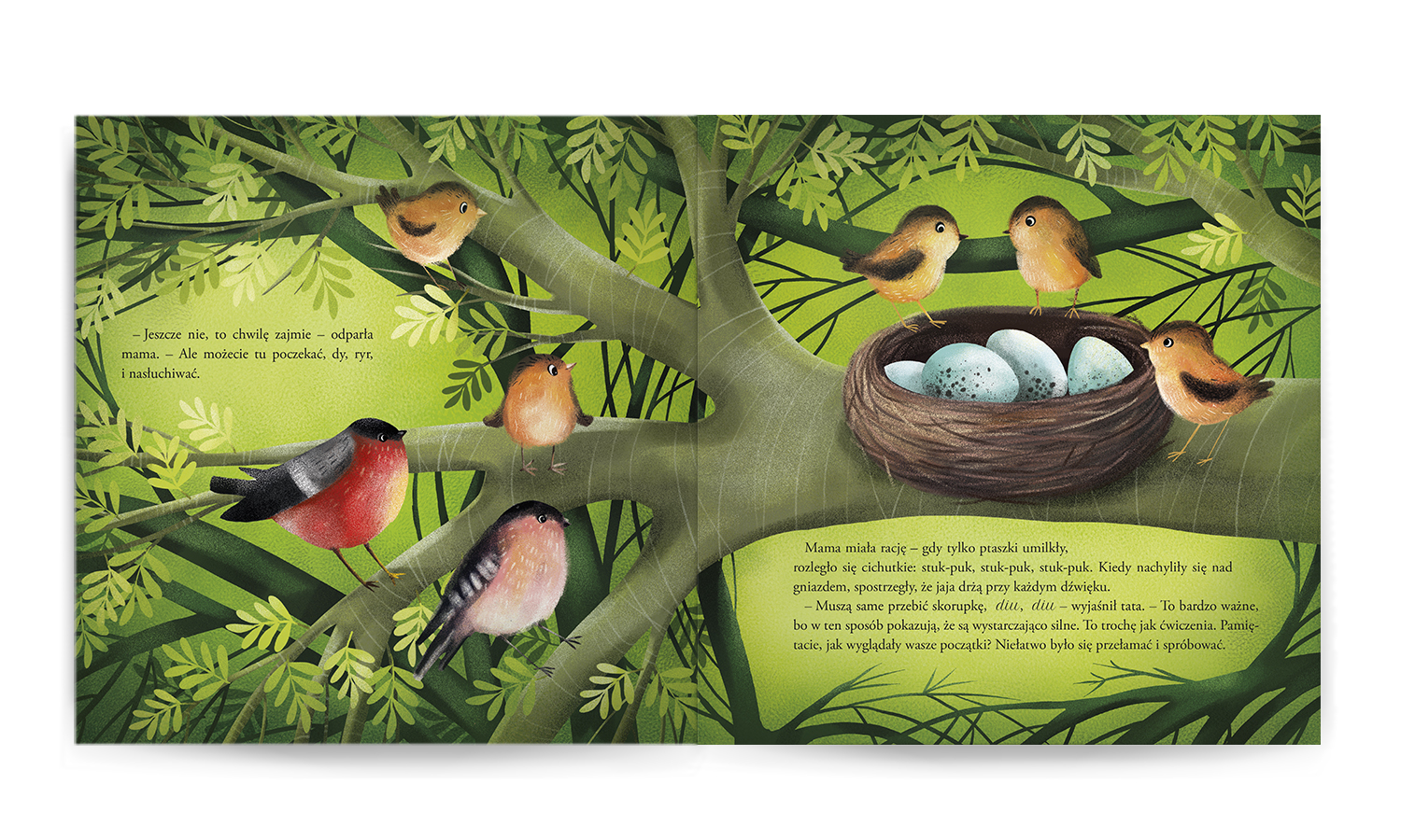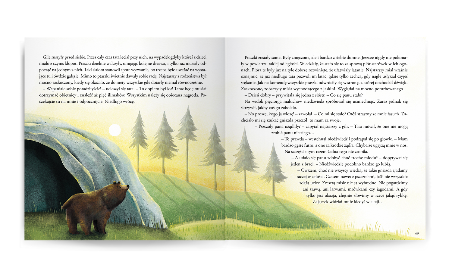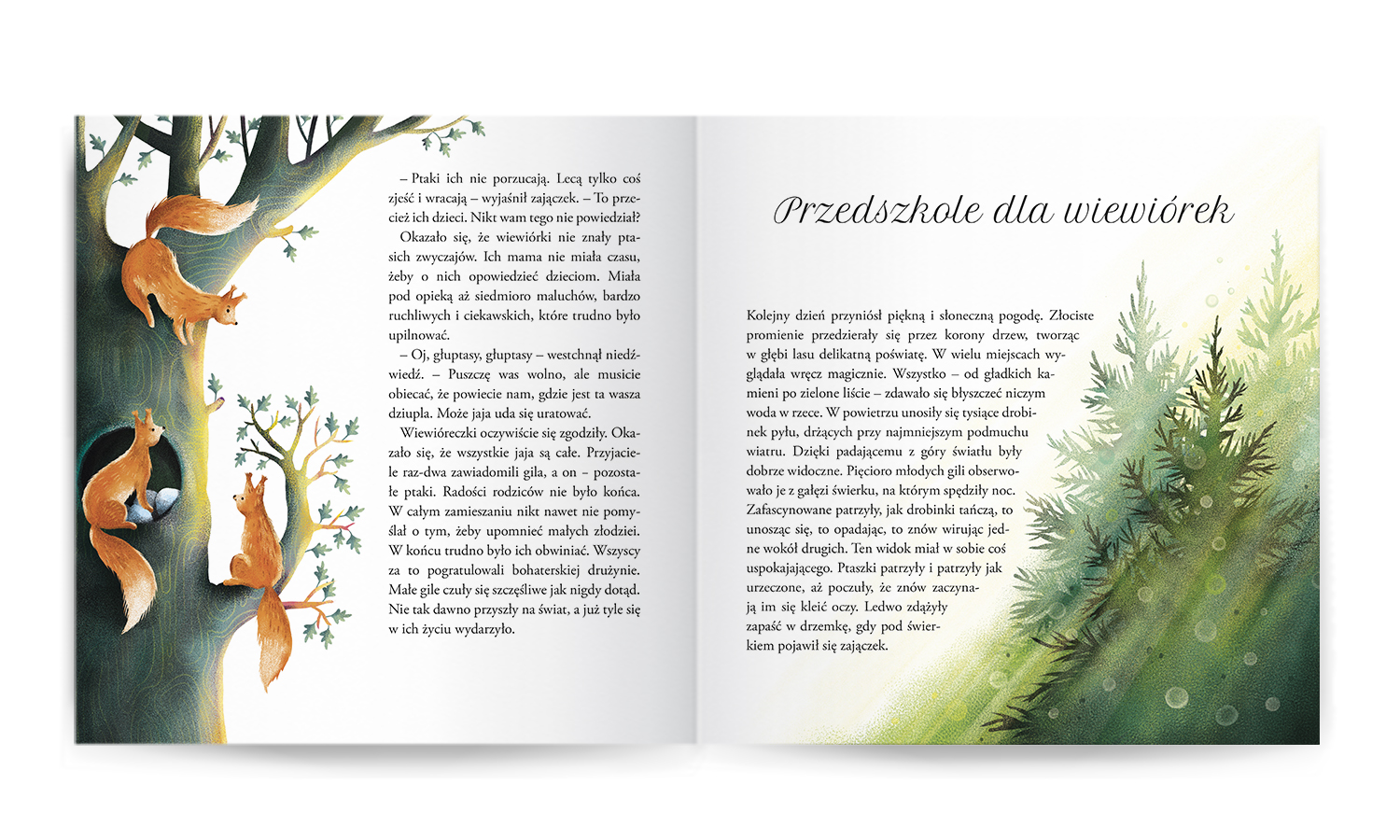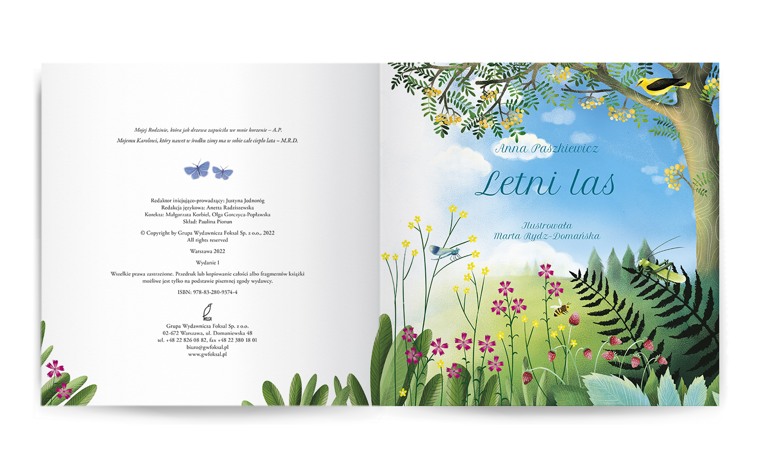 Trzecia z serii czterech książek o przygodach leśnych mieszkańców. Przedstawia przygody stadka pięciu młodych gili, które zaprzyjaźniają się z bohaterami innych części cyklu: zajączkiem, misiem i warchlakiem. Lato w lesie to przede wszystkim nasycona zieleń liści i mnóstwo kolorowych kwiatów i owoców, ale też spokojne, ciepłe poranki nad rzeką i długie wieczory z powoli ciemniejącym niebem. Trudno było też oprzeć się pokusie narysowania łanów dojrzałych zbóż przetykanych chabrami i makami.