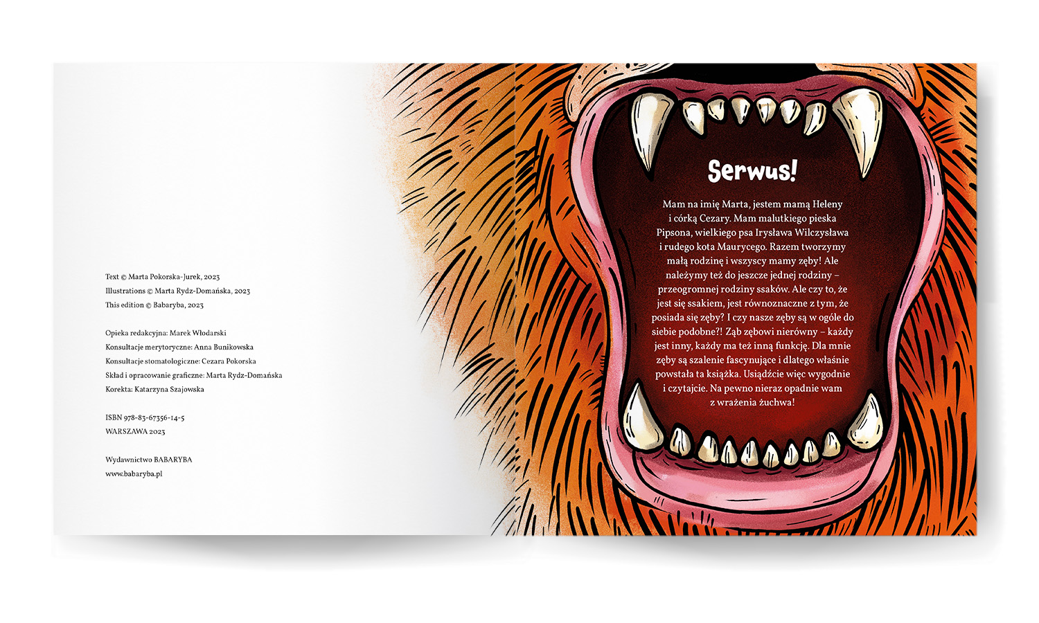 Czwarty tom popularnonaukowej serii przyrodniczej wydawnictwa Babaryba. Tym razem pracowałam w nieco innym stylu - mocną, czarną kreską oraz zdecydowanymi płaszczyznami koloru. Wizerunki zwierząt są też realistyczne - przecież to książka popularnonaukowa, a nie bajkowa opowiastka. Żeby jednak nie było zbyt serio, niektóre ilustracje okrasiłam komiksowymi komentarzami, które – mam nadzieję – wywołają uśmiech na twarzach młodych Czytelników.